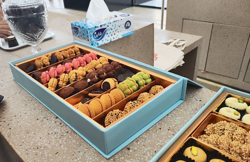 Собрав 7 и более ваучеров, можно возвращаться на первую точку и забирать свой приз! Руководство музея подготовило для вас подарок - целый мешок конфет (мы потом взвесили, там ровно полкило сладостей, среди которых встречаются экземпляры хорошего бельгийского шоколада!) и керамическую вазочку для благовоний. При этом вам предлагают угоститься арабским кофе, финиками и ассортиментом печенья на ресепшене центра. Не знаю, то ли мы так удачно попали, то ли здесь всегда так...